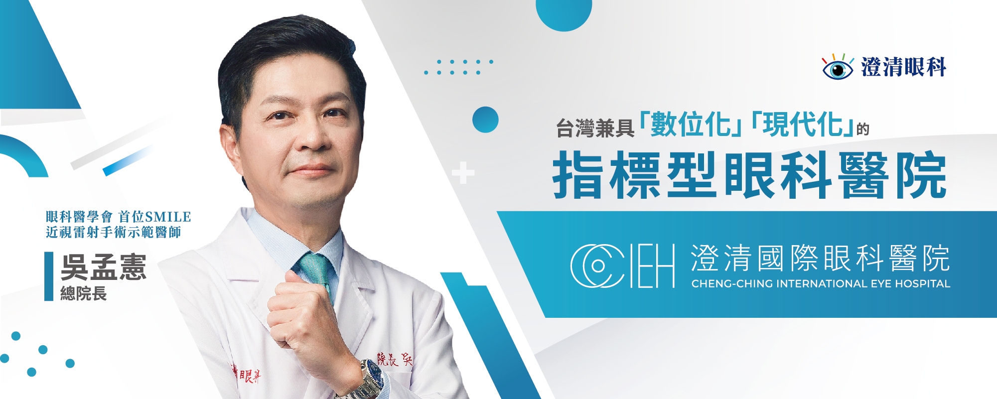 吳孟憲總院長以澄清眼科 Cheng Ching Eye Center 英文品牌的字首的 CC 為發想,互相環抱成為眼睛中重要屈光構造角膜 (Cornea) 的意象,而缺口處也代表引入的光線以及眼科手術的入口,並組合品牌標誌中心之眼珠及湛藍色調,象徵透過「澄清」進而視力「澄清」,讓澄清患者都能擁有澄亮清澈的眼睛。