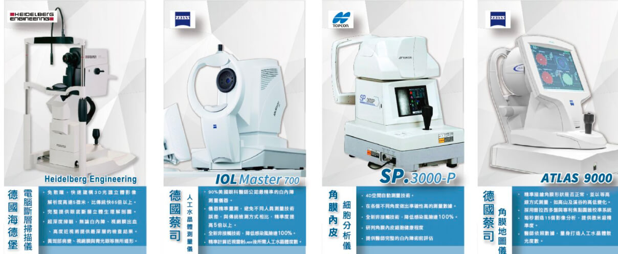 | 3D電腦斷層掃描,新科技操切割水晶體來比人工的更加精準,有效降低風險 | 飛秒雷射儀進行白內障手術,精準飛秒撕囊系統,降低對於組織傷害,加速復原 | 由雷射切割水晶體,可降低超音波的衝擊力,減少傷口,避免「二度白內障」的併發症 | 全程即時3D光學斷層掃描眼球系統,隨時掌控術中的眼睛變化 |