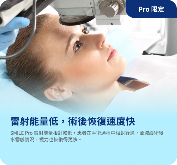 SMILE Pro 2.0 與 SMILE 全飛秒因傷口較小,保留較多角膜完整性、以及維持較高的角膜強度,使角膜不易變形,臨床上長期視力穩定,但術後還是要維持良好的用眼習慣,才不會增加再度近視的可能性。