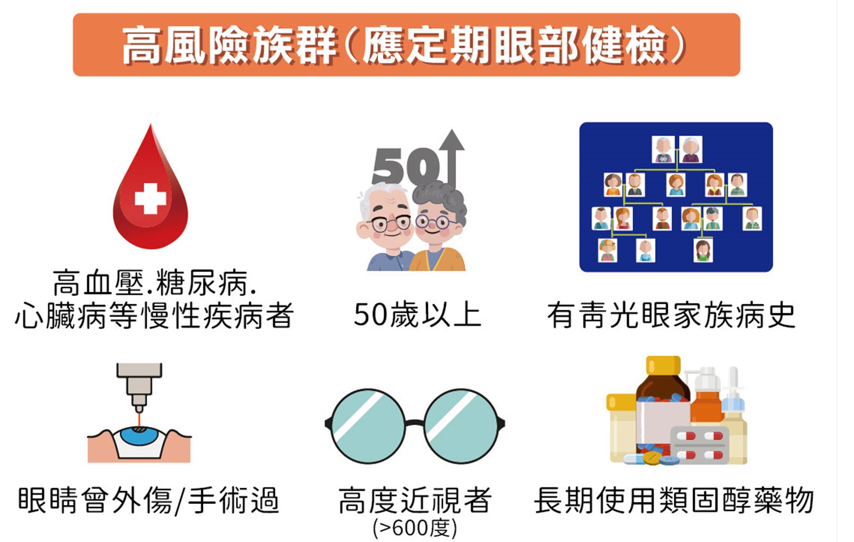 >眼疾(例如遠視兼白內障、糖尿病、眼球內血管阻塞等)